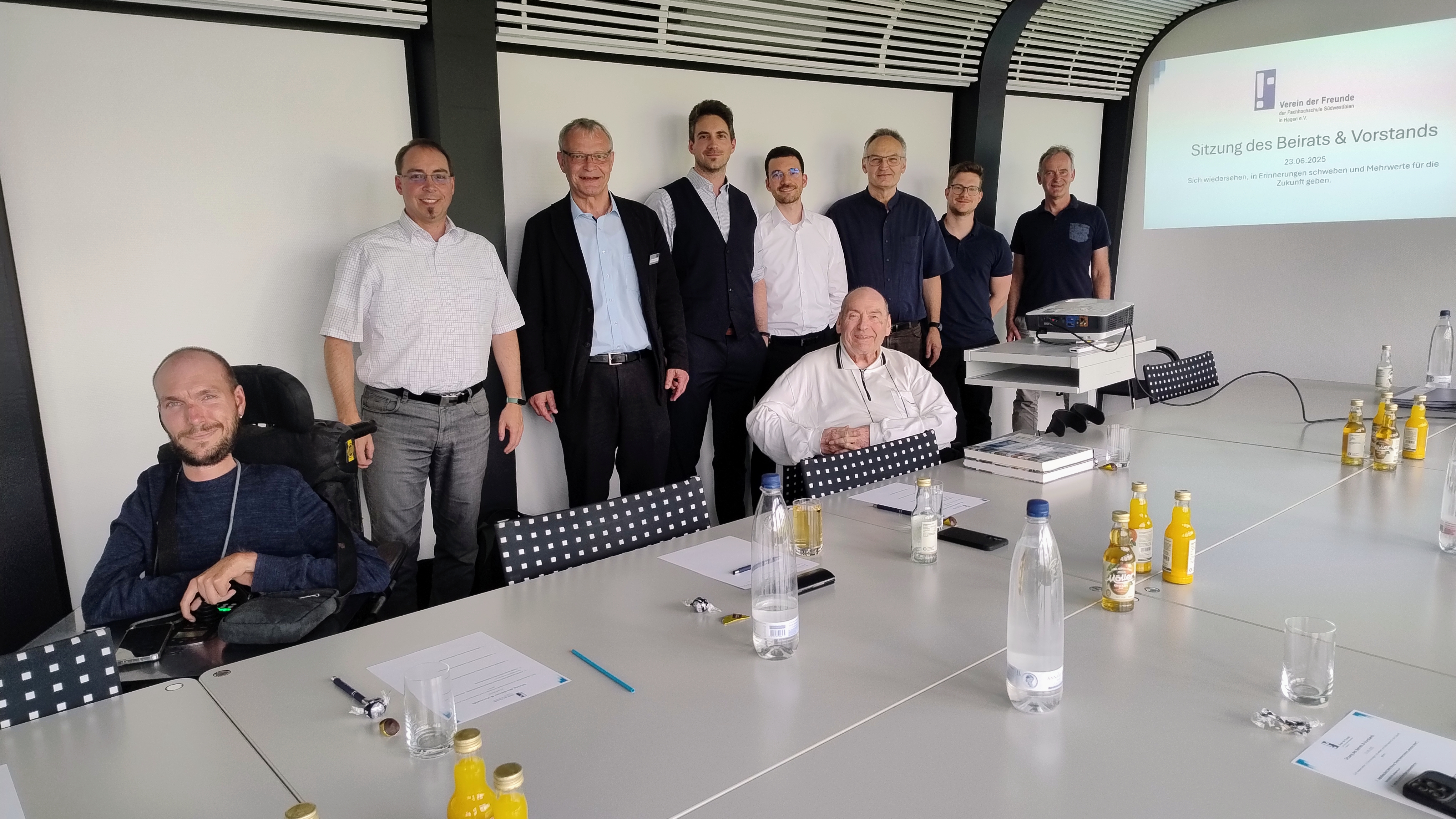 Unter dem Leitmotiv „Sich wiedersehen, in Erinnerungen schweben und Mehrwerte für die Zukunft geben“ kam am 23. Juni der im März neu gewählte Vorstand und Beirat des VdF zu seiner ersten gemeinsamen Sitzung in den Räumen der SIHK zu Hagen zusammen. Nach der erfolgreichen Kooperation mit der Fachhochschule Südwestfalen zum Karrieretag am 6. Mai, bei dem die SIHK auf dem Hagener Campus präsent war, wurde nun der nächste Schritt in Richtung Zusammenarbeit gegangen.