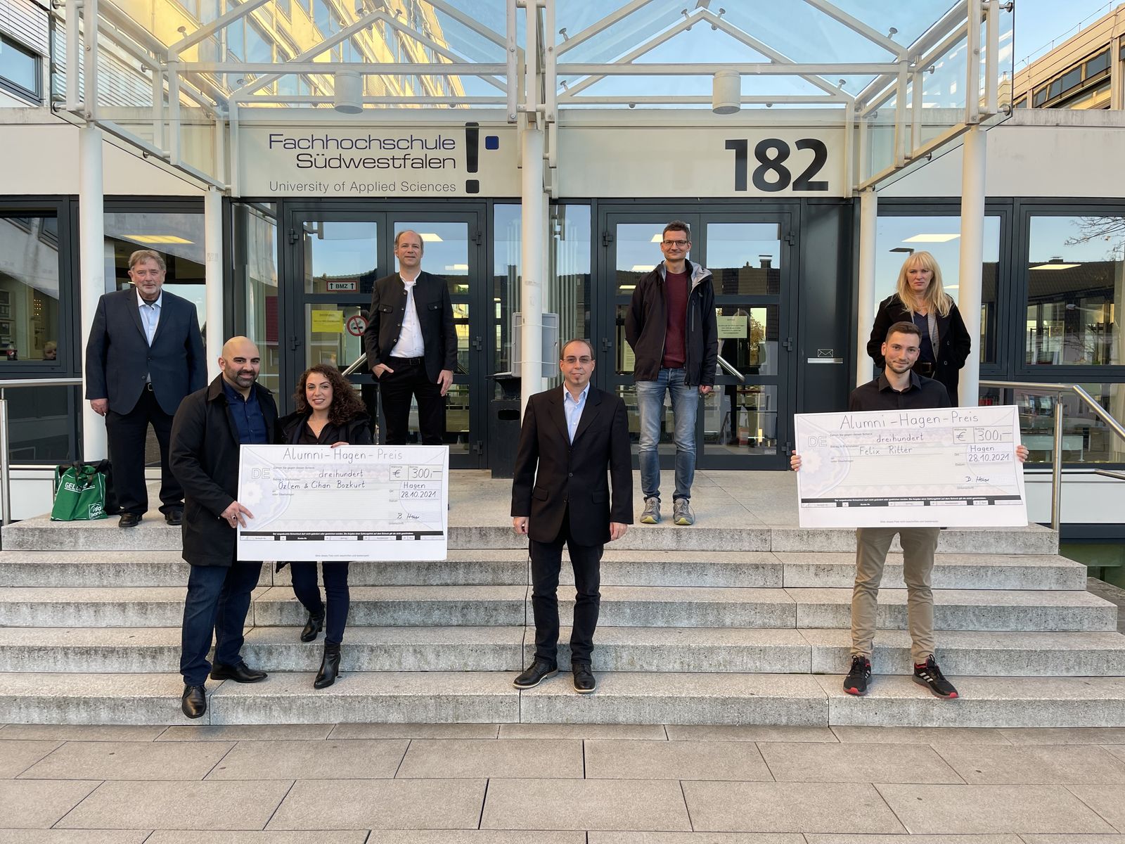 Klaus Sandmann (Geschäftsführer im Verein der Freunde der Fachhochschule Südwestfalen in Hagen), Jan Fischer (Preisträger), Christoph Glatz (stellvertretender Vorsitzender im Verein der Freunde der Fachhochschule Südwestfalen in Hagen), Jordan Klitzke (Preisträger), Björn Heise (Vorstandsmitglied im Verein der Freunde der Fachhochschule Südwestfalen in Hagen), Robin Friedewald (Preisträger), Carolin Zacharias (Preisträger), Simon Gärtner (Preisträger), (Preisträger Malte Mündelein war leider nicht anwesend)